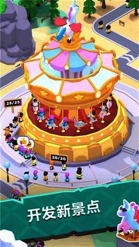 2.有许多不同的娱乐设施等着你去解锁。设施越丰富,就能吸引更多的游客,给你带来更多的好处。
