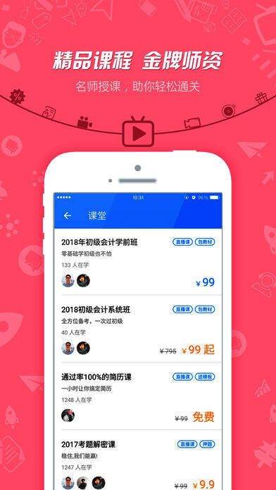 5、会计名师在线视频直播,师生互动,真正实现会计随身学,口袋会计随身听;