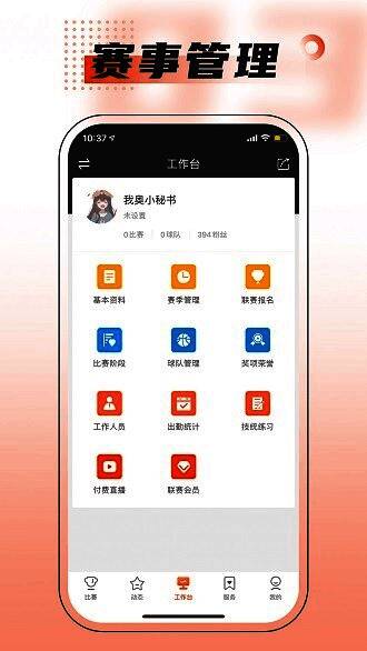 赛事助手的一大亮点在于其实时数据同步能力,支持比分直播与视频直播双重模式,让粉丝能够无缝追踪喜爱的比赛。同时,App还具备日程安排、活动组织、团队管理等功能,支持微信注册与队伍信息统计,极大提升了赛事运营效率。