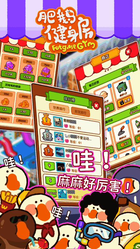 肥鹅健身房是一款玩法极具亮点的休闲小游戏!游戏中玩家将需要努力拥有一个健康的身体,你即将踏上一条特色的健康之路,游戏中有很多健身器材的设计,从中咱们也能学到到很多的健身知识,诸多精彩有趣的玩法等你来体验!