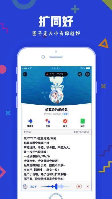 《扩列》是一款扩关系、扩同好的社交平台。用户在这里可以找到自己的同好,与自己志同道合的好友在线交流、互动,并且在未来会为用户加入更多的贴心功能,提升用户的社交体验,让每一个用户都能在这找到一份自己的友谊。
