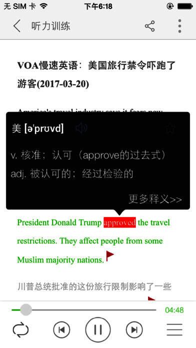 2、提供海量英语听力以及听力解说内容;简洁实用的听力播放器,离线听力下载和播放,支持跟读和点播;
