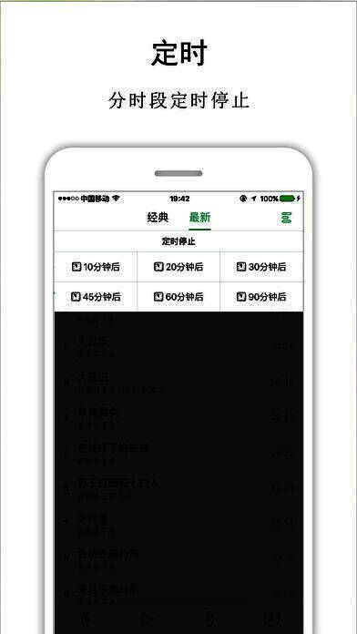 3、定时关闭,分为15分钟、30分钟、45分钟、1小时、2小时自动停止播放;