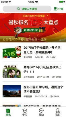 3、语文学习:基础知识、经验交流、重点名校、艺术特长、小升初攻略等信息;