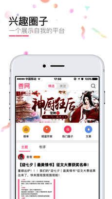 香网小说app是快乐大本营官方推荐的小说阅读神器,收录了30万部原创言情小说,覆盖题材丰富,全面满足你的阅读需求,在香网小说app中你可以轻松阅读自己喜欢的小说,还可以实时了解时下热门小说。
