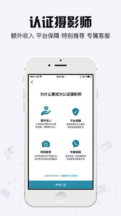 《一拍》是生活娱乐类软件;这里收录了业内知名模特和专业发烧摄影师大神,还有拍摄场地认证租赁。摄影师都是经过认证海选出来的,个个都是顶尖级别鉴赏美丽能力的佼佼者。在此软件内你会学习和欣赏到大神的风采。