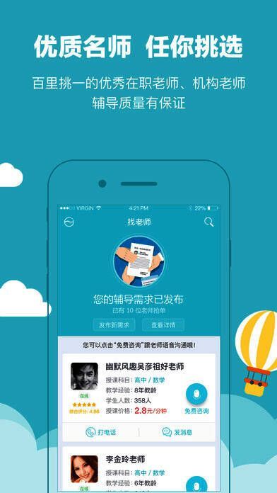 【海量名师】平台拥有各省级优秀骨干教师、在职老师以及专业辅导机构的优秀老师,全国优秀教师任您选择,免费咨询沟通,请名师设计完美的教学方案。教学效果立竿见影;