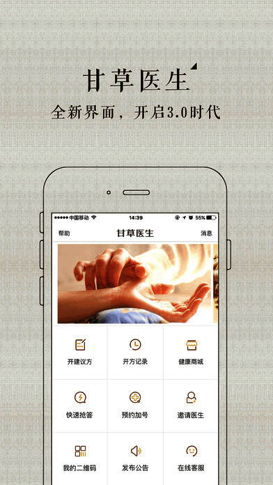 甘草医生是一款移动互联网中医在线问诊医疗应用,针对患者看病难、看病贵、体验差;药材质量良莠不齐、煎药流程不规范、中医传承难等中医行业痛点,用互联网思维和技术提升行业标准。此应用为甘草医生版,适用于入驻甘草医生的中医。