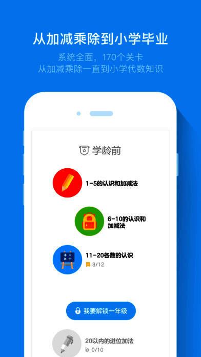 系统全面,170个关卡,从加减乘除一直到小学代数知识;