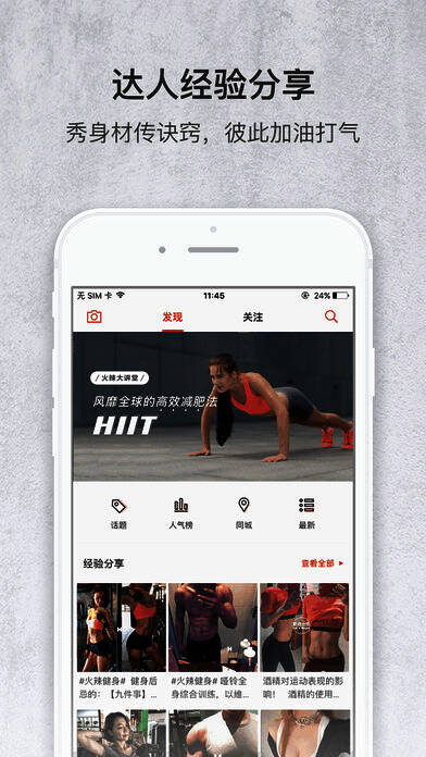 火辣健身帮你找到志同道合的运动伙伴,帮你发现身材火辣的妹子,让你认识身形健硕的小伙。