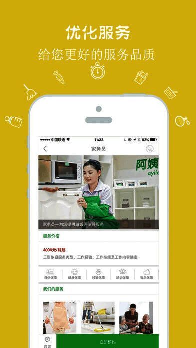 6、细节优化完善,体验更流畅,阿姨来了为您打造完美的一站式家庭生活、企业后勤服务。