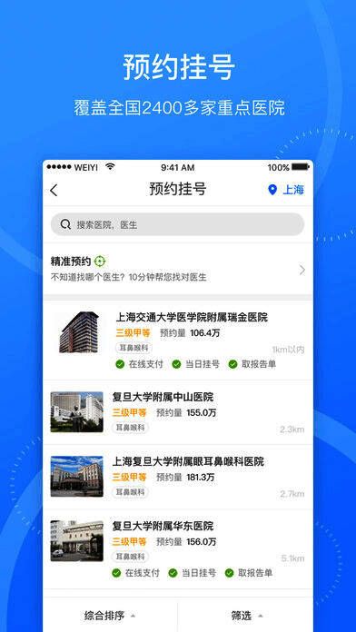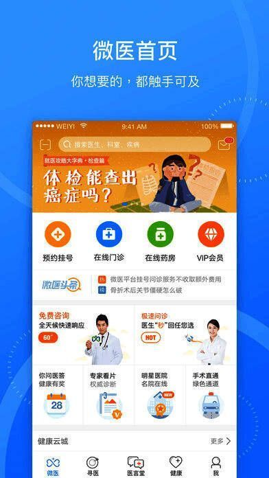 1、预约挂号:挂号摆脱排队烦恼。微医连接了覆盖全国27个省份数千家三甲医院的挂号资源,用户登录微医,按照症状查找专家医生,轻松实现预约挂号;