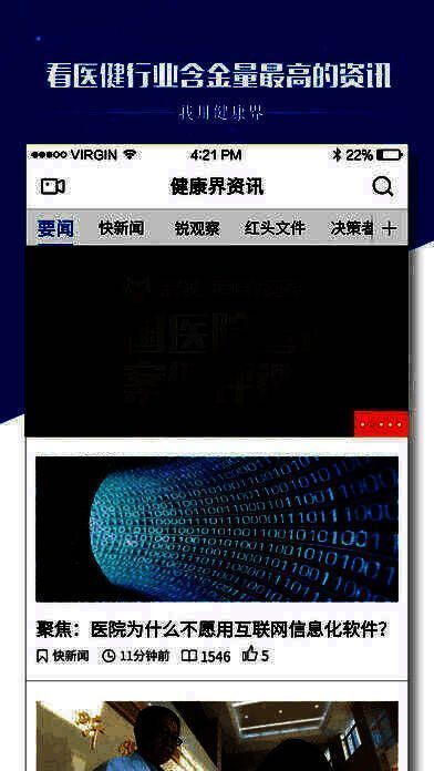 《健康界》是北京华媒康讯信息技术有限公司为医疗行业打造的一款医疗行业重度垂直应用,在这里,你可以一键阅尽行业早讯,也可以入住众说与千名大咖一较高下,更能与志同道合的同道分享知识换取收益,给您最佳的阅读分享体验。