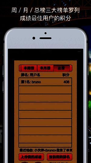 4、周/月/总榜三大榜单罗列成绩最佳用户的积分。