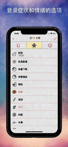 9、登录症状和情绪的选项;