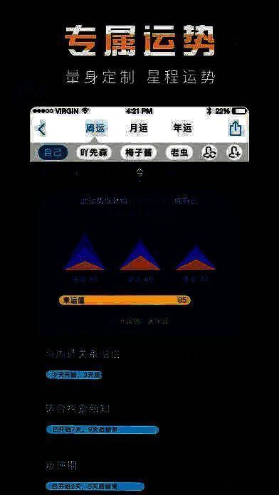 测测星座结合你独一无二的个人星图以及宇宙星象推算出专属你的每日运势、本周运势、一生运势;