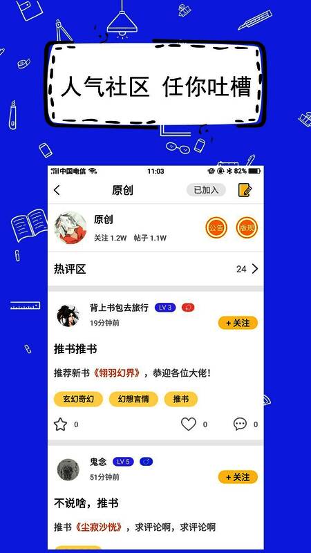 应用内设有一个充满活力的文学交流社区,汇聚了来自全国各地的创作者。在这里,你可以分享自己的作品、接受他人点评,也可以参与热门话题讨论、挑战赛等活动,与其他作者互动交流,碰撞出更多创意火花。