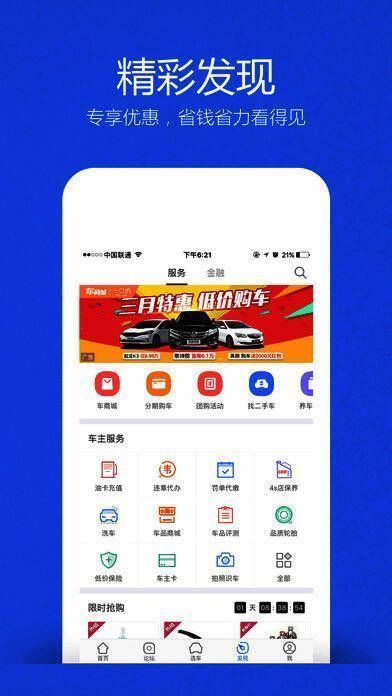 5、【用车养车】:保养保险有优惠,更有贷款买车、二手车买卖、车辆违章查询等众多贴心服务满足你的全方位需求。