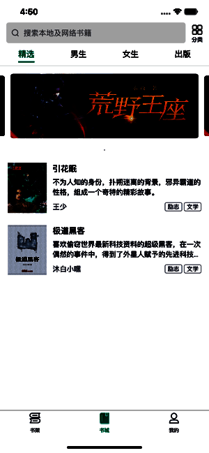 分类书库:书城精选、男生小说、女生小说、热门榜单,分类应有尽有