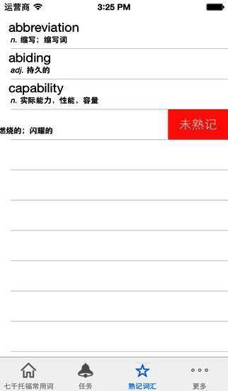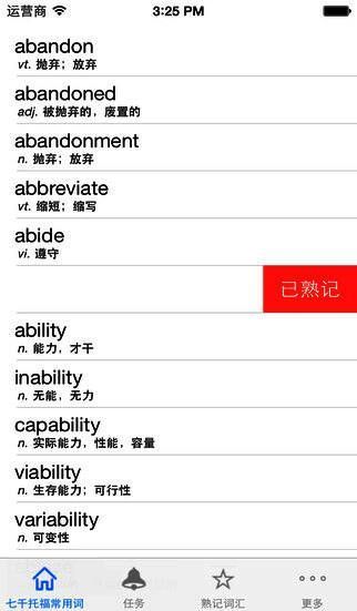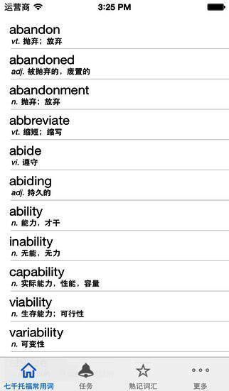 《灵灵单词托福专版》是一款专门用于外语学习的软件,收集了约6000个考试常用词汇,帮助您学习单词。本软件会帮您把记熟悉的软件跳出来不再复习,把精力全部都放在仍未熟记的单词上面,避免浪费时间和精力。