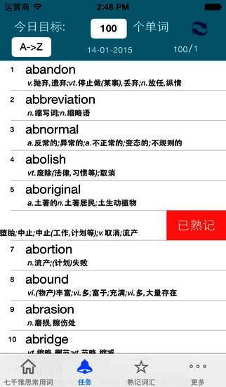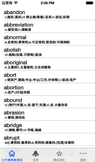《灵灵单词雅思专版》是一款专门用于外语学习的软件,收集了约6000个考试常用词汇,帮助您学习单词。本软件会帮您把记熟悉的软件跳出来不再复习,把精力全部都放在仍未熟记的单词上面,避免浪费时间和精力。