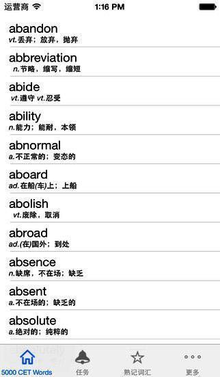 “灵灵单词”收集了约6000个考试常用词汇。本应用可以帮助您管理单词的记忆,如帮您把已经熟记的单词挑出来,让您把更多的精力和时间放在仍未熟记的单词上。该应用的目的就是让记忆单词这种枯燥无味的工作变得更加简单和高效。