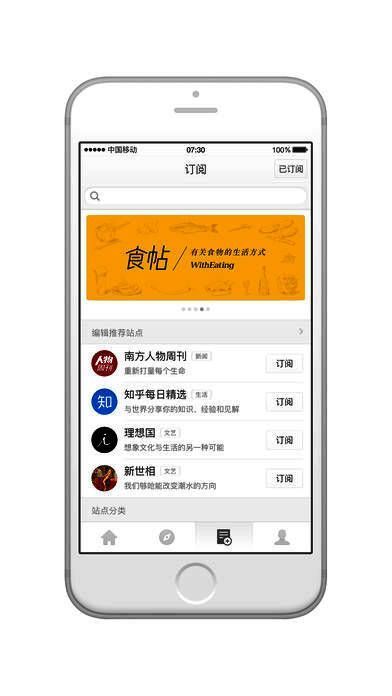 “发现”频道按类目自动更新全站文章速览,为个性订阅提供直接参考,快速发现最符合兴趣的优质站点。