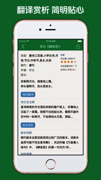 3、详情查看:详情页内容详尽,支持同步查看注解,译文和赏析;