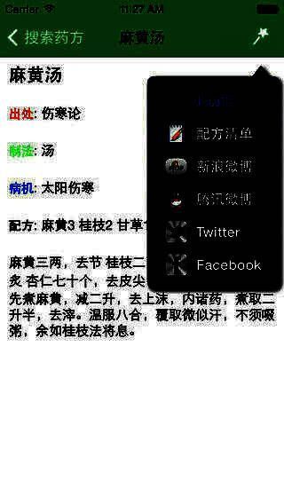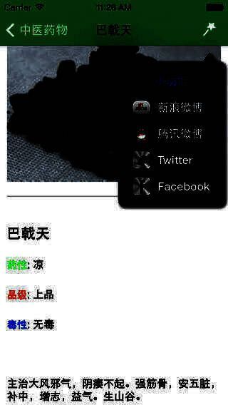 5、 内置了新浪,腾讯微博, twitter 和 Facebook 的分享功能。