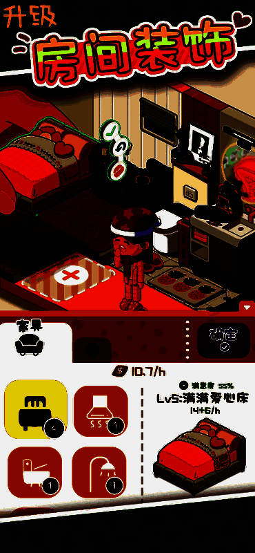 游戏中提供了多样化的房间类型与装饰选项,满足不同玩家的审美与布局喜好。你可以自由尝试各种风格搭配,同时完成每日任务来获取奖励,用于进一步升级公寓设施或拓展新区域。操作方式简单易上手,适合各个年龄段的玩家随时享受轻松愉快的游戏时光。