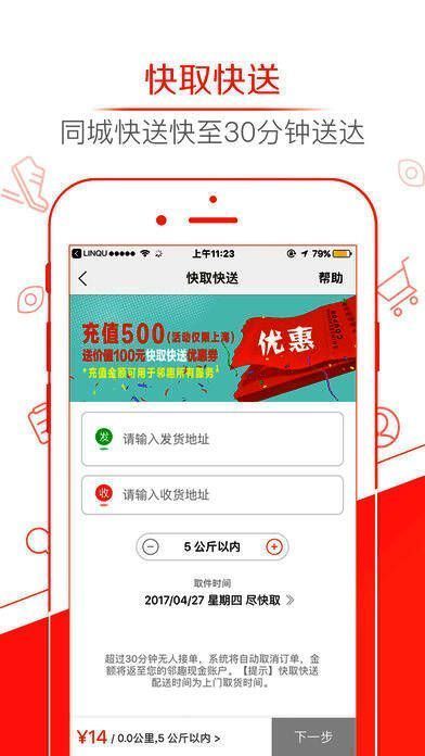 5、一流的的配送队伍,半小时送到,动一动手指下载邻趣,跑腿省时间;