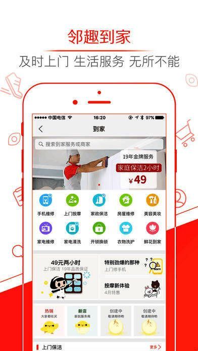 6、邻趣目前已覆盖上海、北京等多个城市,服务品类丰富,百万用户信赖;一键下单,轻松上门;