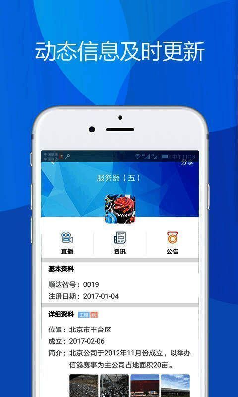 专业信鸽资讯平台,为信鸽爱好者提供资讯、公告、短信通知,视频在线直播,交友,并为鸽友提供真实信鸽飞行数据及天气,并为鸽友分析信鸽实时动态,监控信鸽生活习性等。