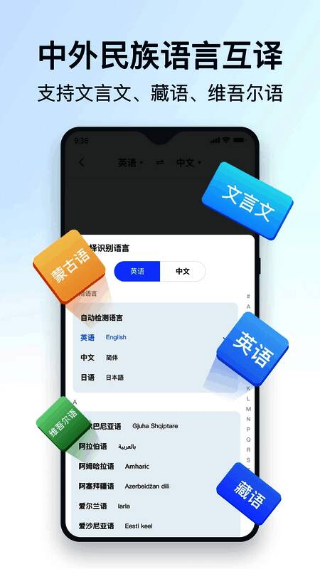 该应用支持包括中文、英文、日文、韩文、法文、德文、西班牙文等在内的上百种语言互译,几乎涵盖全球所有主要国家和地区的主要语言,真正实现了“一机在手,翻译无忧”。