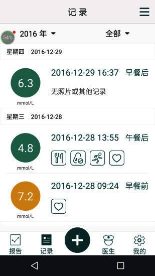 2、血糖测量及记录:血糖自动上传系统或手动录入,并添加标签;