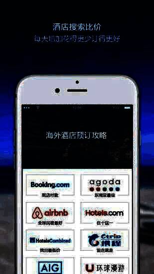 2、轻松比价预订】提供多个世界顶级的酒店预订平台如:booking、agoda、hotels.com、airbnb等,在app内可以直接预订各平台酒店;比价平台更是能让你快速比价,订到最低价格。