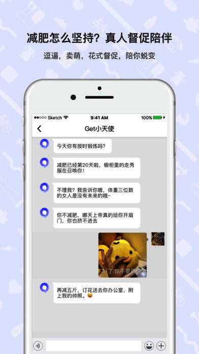 挑选你的专属小天使,从此减肥不再只坚持三天。霸道总裁管住你的嘴,温柔小哥哥叫你迈开腿,还是不想动...讲个笑话或者卖个萌可以吗?还有咆哮体、轰炸机、夺命连环call...不管你是抖S还是抖M,总有一款适合你;