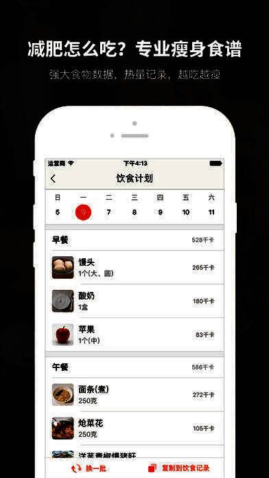 3、记录饮食、运动:记录可以有效提高你的减重成功率!想知道你今天到底吃了多少,消耗了多少卡路里吗?坚持记录饮食和运动,就能得到每天摄入和消耗的卡路里数量,再对照推荐热量值,轻松监控自己每日饮食,不会多吃。