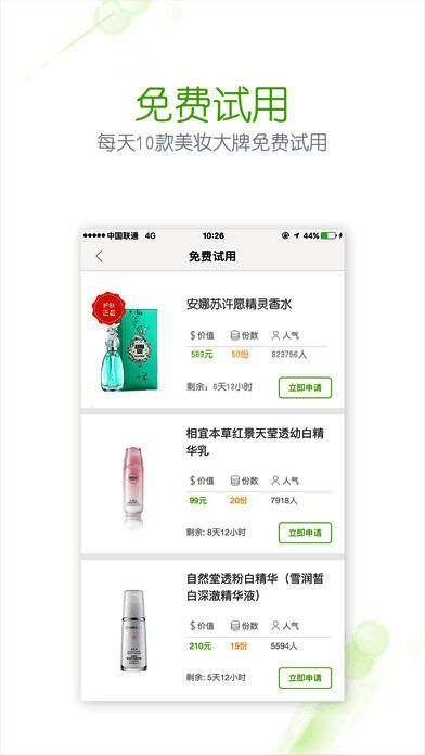 5、免费试用:大牌妆品免费试用,体验最新最潮单品。