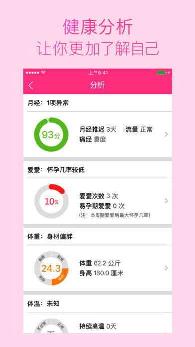 4、细心呵护,给你不同阶段的关爱:开启经期、备孕、怀孕、育儿四大模式,陪伴你从校服到婚纱,从少女到妈妈,不同时期给你特殊的照顾!