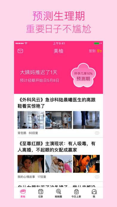 2、美柚是一款记录经期的APP,更是女性健康生活的正确入口,为女生提供购物、减肥、瘦身、美容、丰胸、星座交流,还可随心切换备孕、怀孕、育儿、孕期模式!