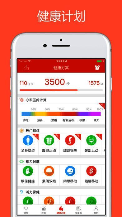 1、通过手机测量用户的血压、心率、视力、听力、肺活量、心理指数、色盲等身体数据;