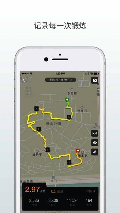 2、全新的GPS运动界面,新增了对配速和海拔数据的统计;