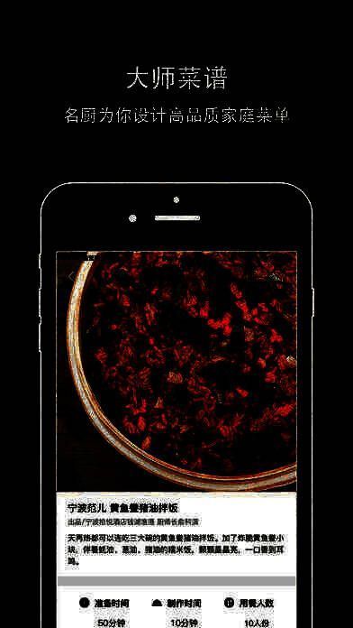 3、【大师菜谱】和名厨、专家一起设计独家、时髦、新鲜、易于操作的家庭菜单。用文图或者短视频的方式进行呈现。为追求高品质家宴菜谱的资深用户提供独一无二的选择。