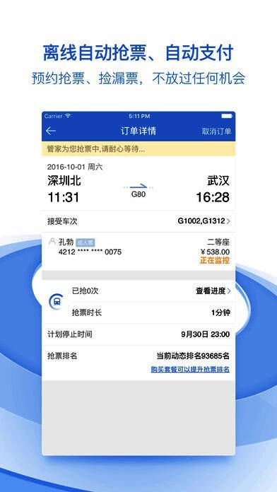 【自动抢票】一次能抢多张火车票,自动提交订单,再也不用担心买不到火车票了;