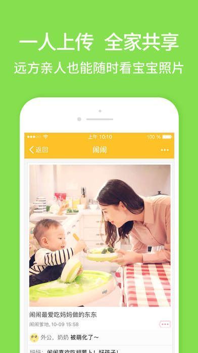 4、实时同步:一人上传全家共享,在外地的亲人也能实时看到宝宝成长变化。