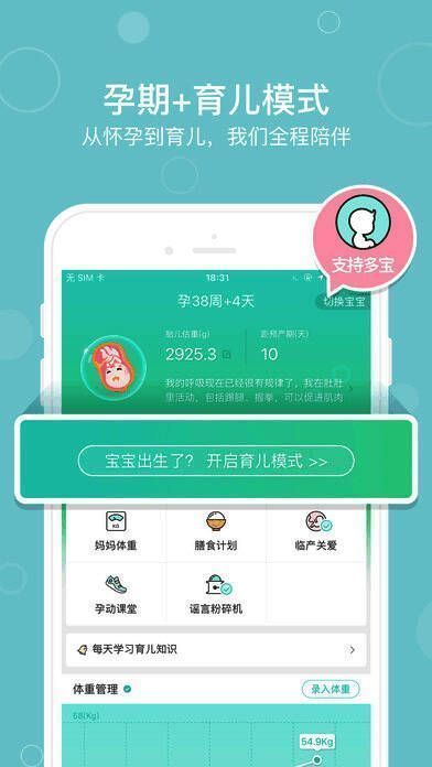 1、【个性化定制】基于大数据,率先实现个性化内容的推送,根据宝宝所处阶段每天给你送上最全面的备孕知识,孕期知识,新生儿养护知识,育儿知识,满足每位新生妈妈孕期的不同需求,孕育知识学不停,轻松做个够专业、懂科学的孕妈妈;