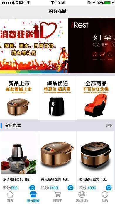 2、上千款免费家电、厨具、酒水、日用百货、汽车用品等礼品随意兑;