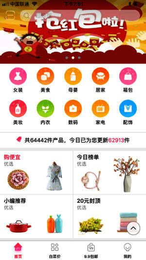 《优惠街上》下载是一个优惠购物平台,每天上线数千款优质商品,涵盖各种类型的商品,各种精品好货任你购买,还有各种折扣福利活动等你来参加,让你尽情享受购物的乐趣。一款专注省钱购物的网购平台,优惠街上app精选全网各种优惠商品,更有各种特卖活动,全程一折包邮等活动等着你,领取优惠卷购物更优惠哦!