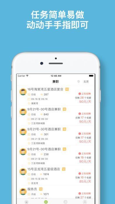 1、海量兼职岗位:快速报名,就近上岗;